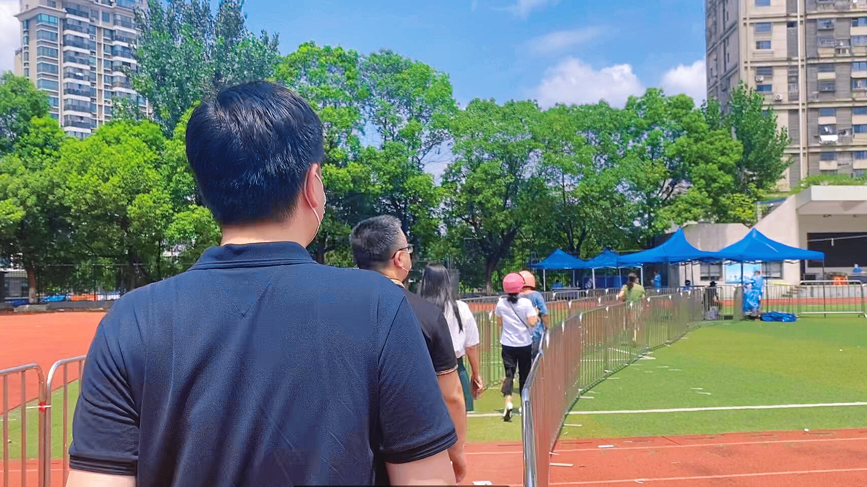 到了操場,聽從志愿者的安排到指定桌前進行核酸檢測。