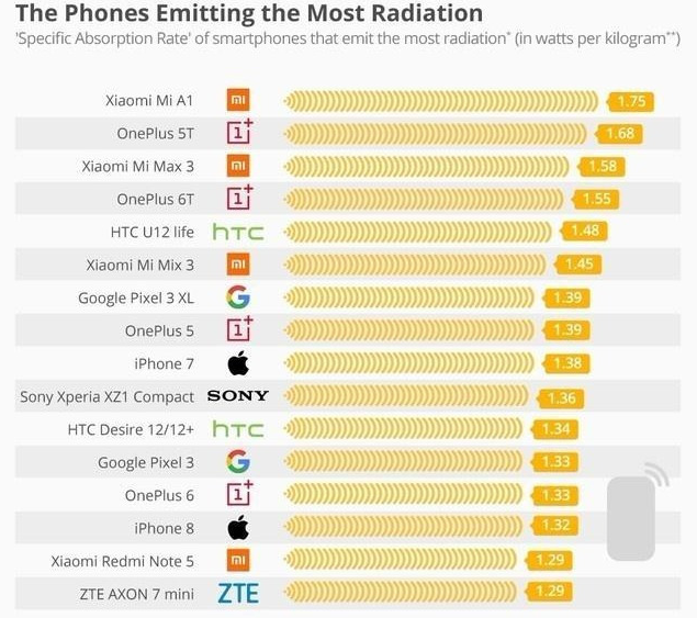 手機輻射量排名:小米一加手機輻射最多?華為未上榜