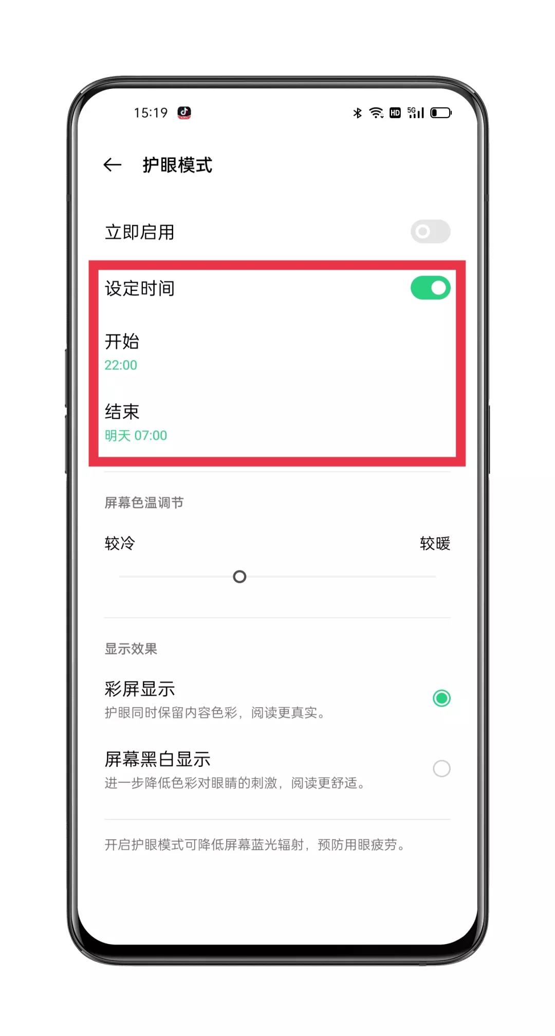 啟動護眼模式,調節屏幕色溫和顯示效果