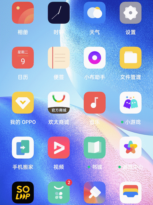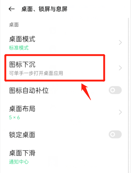 ColorOS 7.2及以上機(jī)型(Reno4 系列首發(fā)):「設(shè)置 > 桌面與樂劃鎖屏 > 圖標(biāo)下沉」或「設(shè)置 > 桌面、鎖屏與息屏 > 圖標(biāo)下沉」